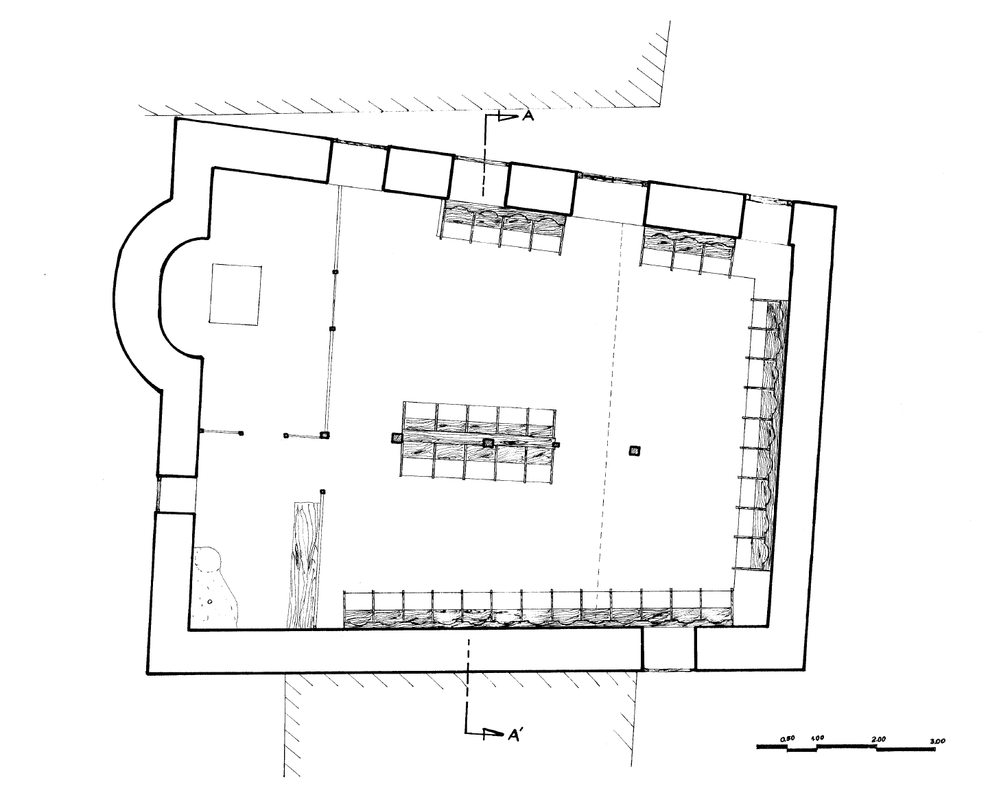 The church of St. Vasilios, most likely built in the late 18th c., is a three-aisled basilica with a hip roof. The separation of the aisles is effected in a rudimentary way by means of two rows of wooden pillars. Above the western section of the church there is a wooden matroneum, of a straight-line ground plan. The church has no painting decoration.