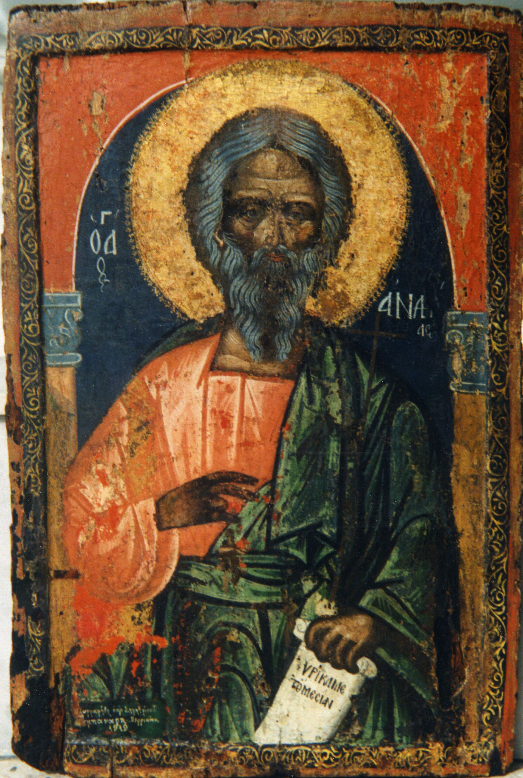 Η πίσω όψη της εικόνας, με τον Άγιο Ανδρέα, ζωγραφήθηκε σε πολύ μεταγενέστερο χρόνο, ενδεχομένως κατά τη μεταφορά της στον ομώνυμο ναό. Τα τεχνοτροπικά χαρακτηριστικά της την σχετίζουν με αγιορείτικα εργαστήρια των αρχών του 18ου αιώνα.