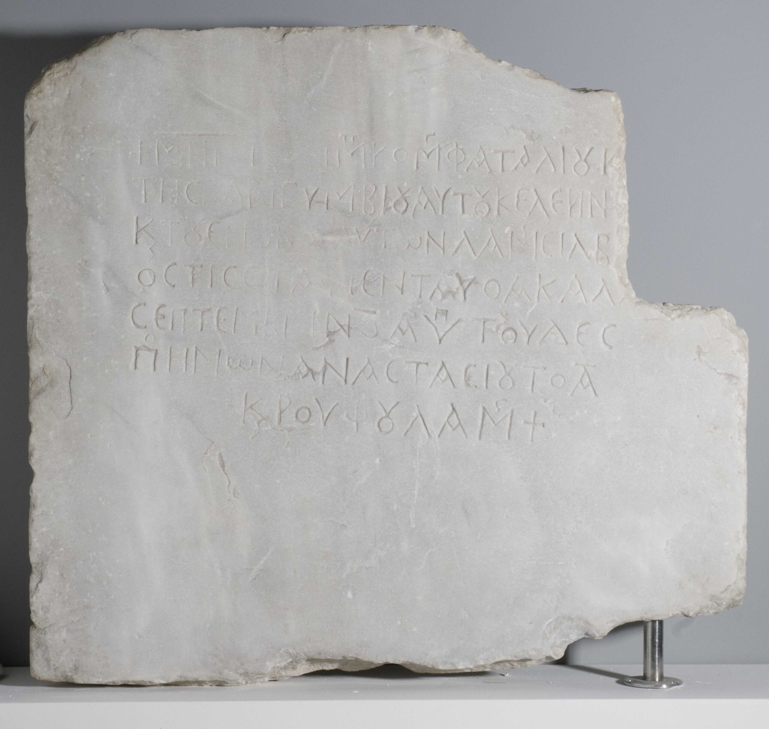 Επιτύμβια ενεπίγραφη πλάκα που αναφέρεται στον κόμη Φατάλιο, τη σύζυγό του Κελερίνη και τον εγγονό του Σιλβανό, 492 μ.Χ.